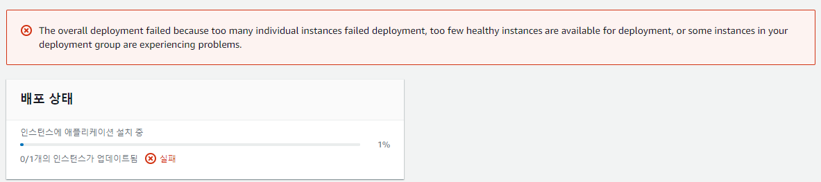 [AWS] The overall deployment failed because too many individual instances failed deployment, too few healthy instances are available for deployment, or some instances in your deployment group are experiencing problems. 본문