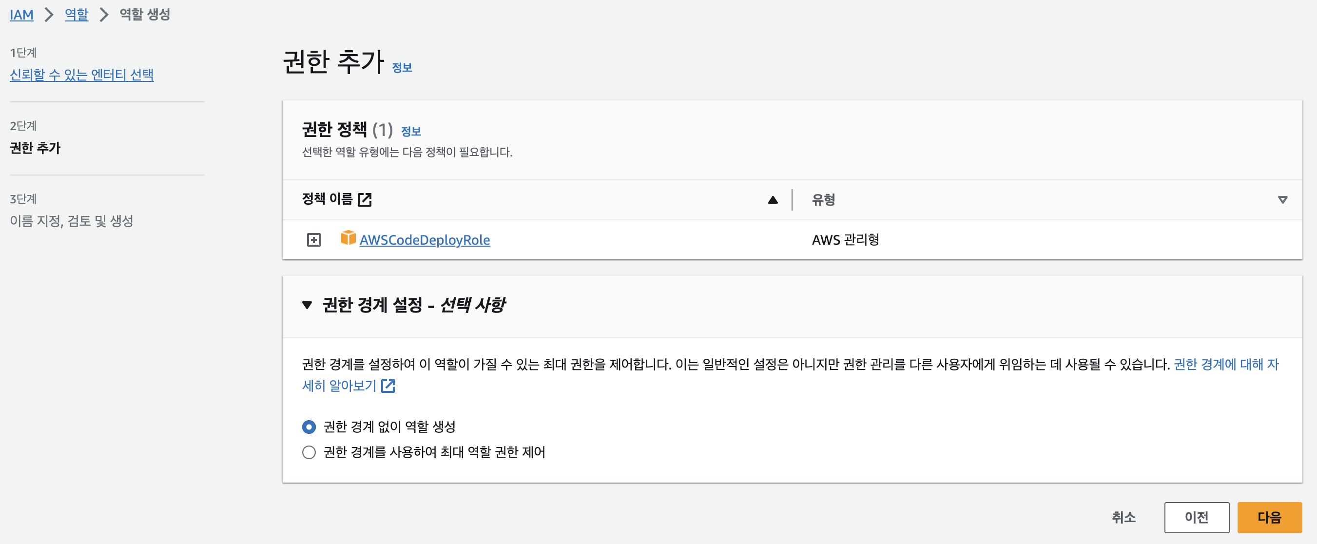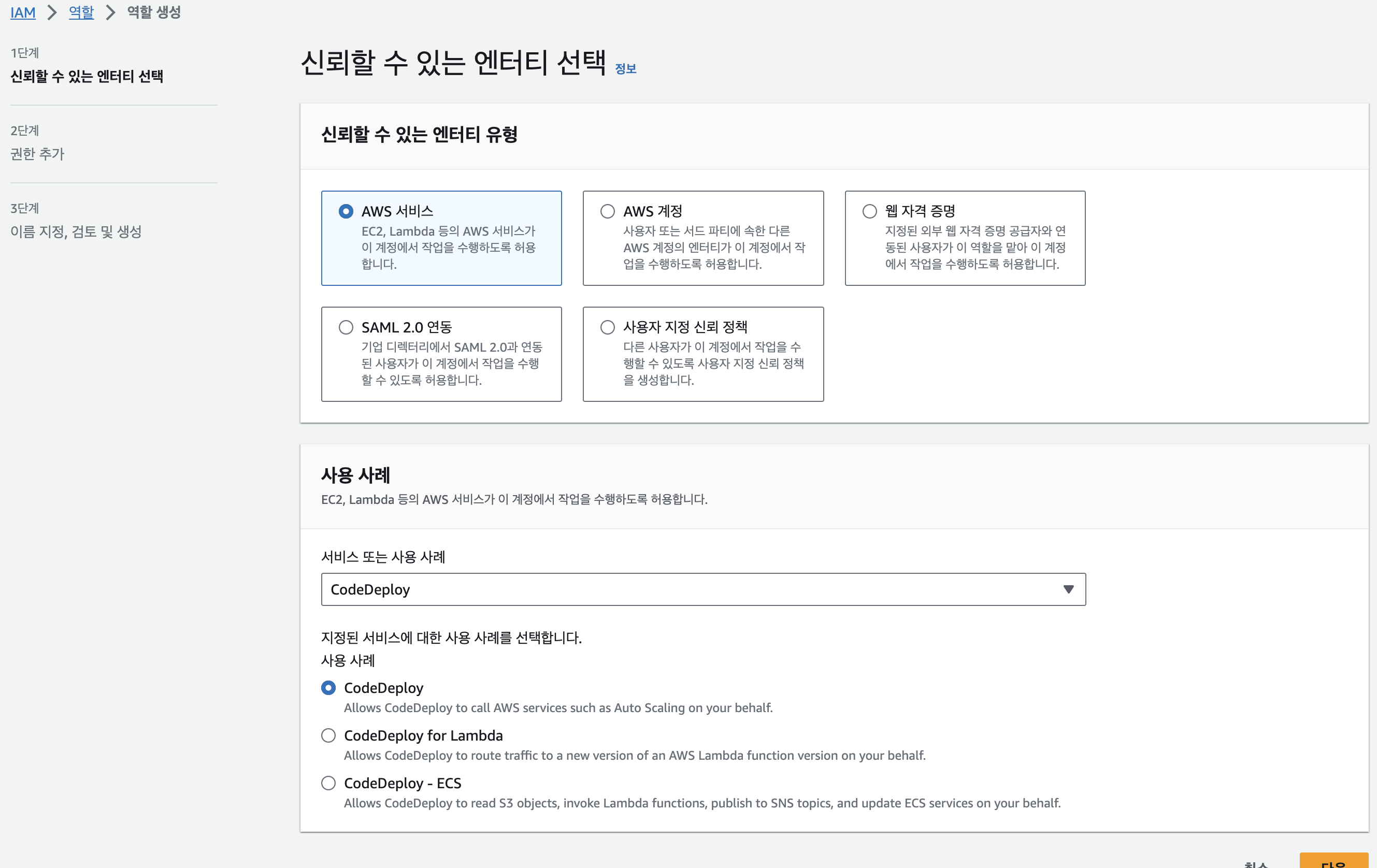 IAM > Role > 역할 생성 에서 CodeDeploy > Next
