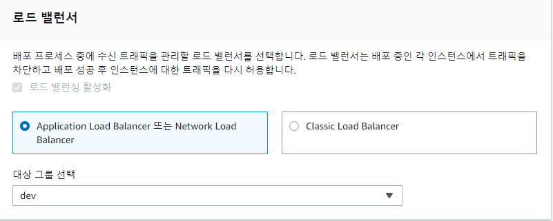 로드 밸런서도 미리 만들어둔 로드 밸런서를 선택해준다.