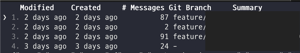 claude --resume: 이전 대화 목록을 보고 대화를 선택할 수 있음