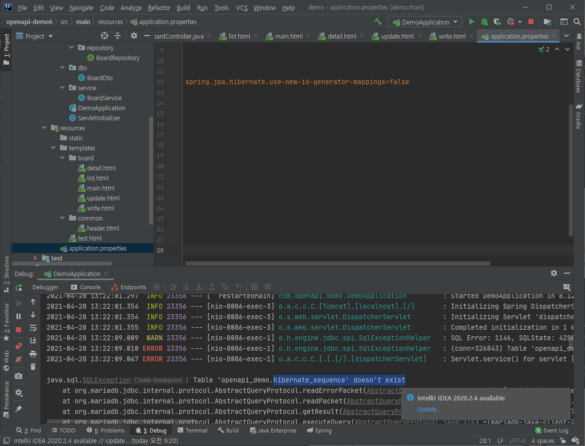 Table 'DB_NAME.hibernate_sequence' doesn't exist 본문