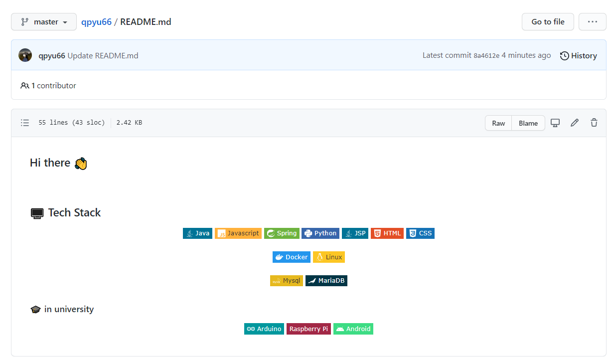 배지(shields.io/) 와 아이콘(simpleicons.org/) 은 링크에서 확인가능하다.