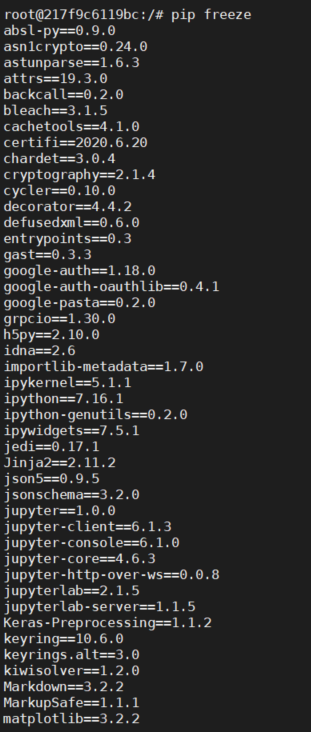 현재 가상 환경에 설치된 pip package 버전을 확인하고자 한다.