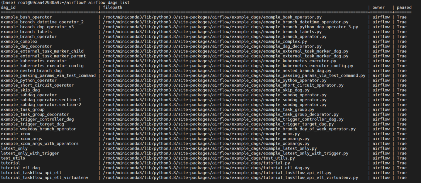 airflow dags list