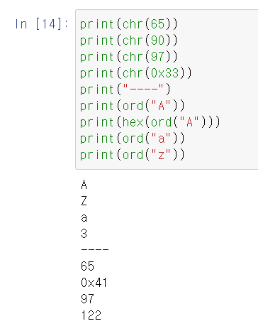 chr() : 아스키 코드를 문자로 변환해준다.(10진수, 16진수 가능)