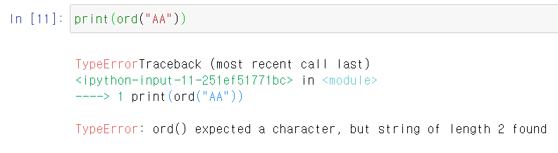 ord() 에는 한 개의 문자만 사용 가능하다