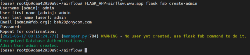 [airflow] WARNING: No user yet created, use flask fab command to do it