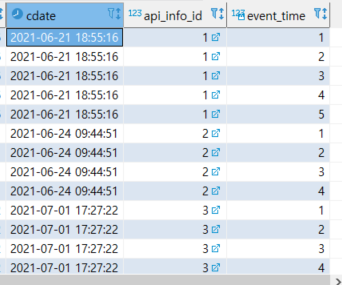 row_number() over(partition by api_info_id order by cdate) event_time