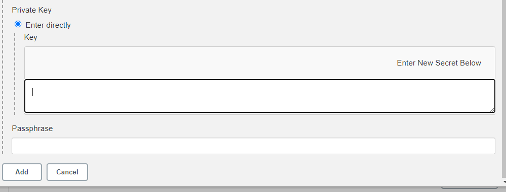 - Private Key에서 직접 입력을 선택 하고 Add Key 버튼 선택 후 private key를 직접 입력합니다.