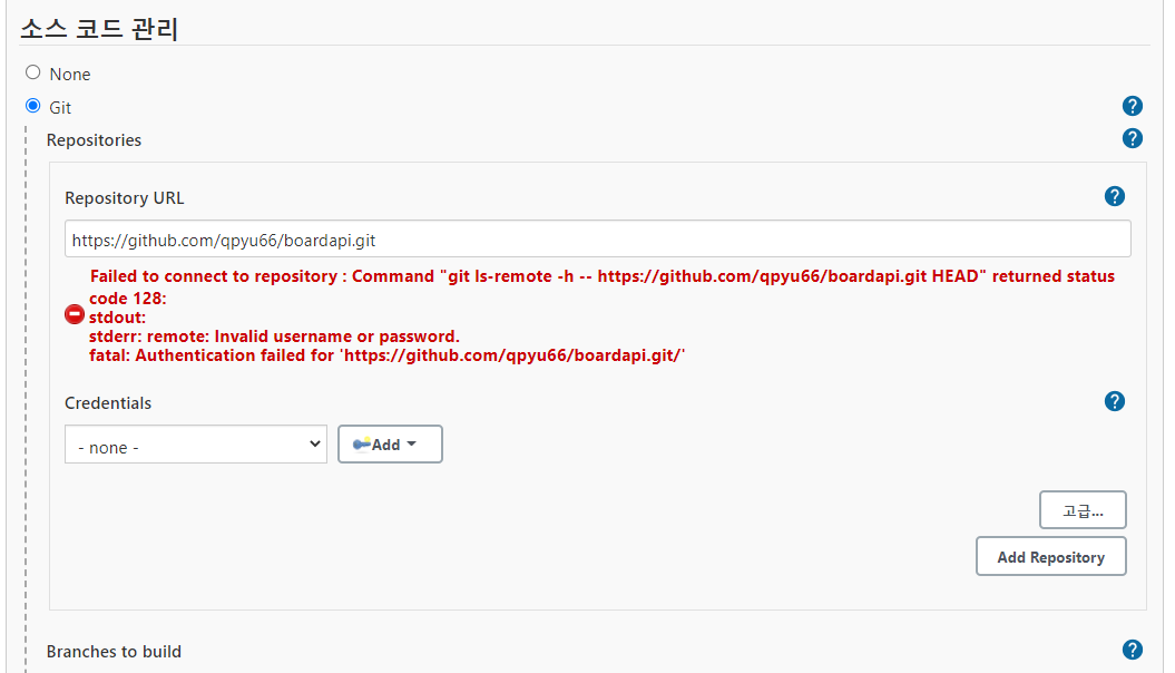 jenkins Failed to connect to repository - private repository 안됨 본문
